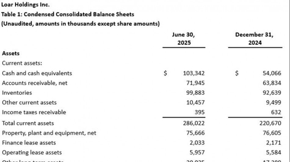 WHITE PLAINS, NY / ACCESS Newswire / 13. August 2025 / Loar Holdings Inc. (NYSE: LOAR) (das „Unternehmen", „Loar", „wir", „uns" und „unser/e") meldet für das zweite Quartal 2025 ein Rekordergebnis, korrigiert seine Prognosen für 2025 nach oben und gibt die Übernahme der Firma Beadlight Ltd. („Beadlight") bekannt.