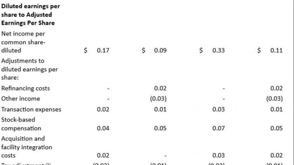 Bereinigter Gewinn pro Aktie - zwischen 0,83 $ und 0,88 $, eine Steigerung gegenüber 0,71 $ bis 0,76 $