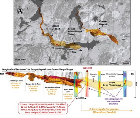 The Company has been approved for up to $200,000 in government funding as part of the Ontario Junior Exploration Program (OJEP) that will be used to advance work in the 2.5 km long Escape down-plunge target, where it recently intersected 53m of resource-grade mineralization in the initial exploration hole (Figure 1 and October 20, 2025 release).