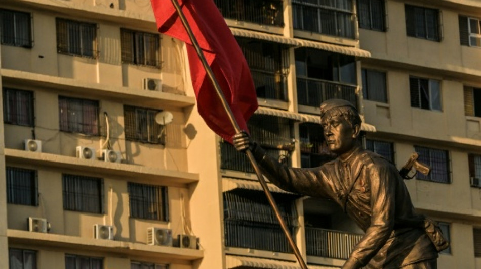 Dos banderas entrecruzadas de la antigua Unión Soviética y la frase '80 años de la victoria' iluminaron el cielo durante la inauguración este martes de una plaza en Caracas en homenaje a Rusia, aliado clave del presidente Nicolás Maduro.