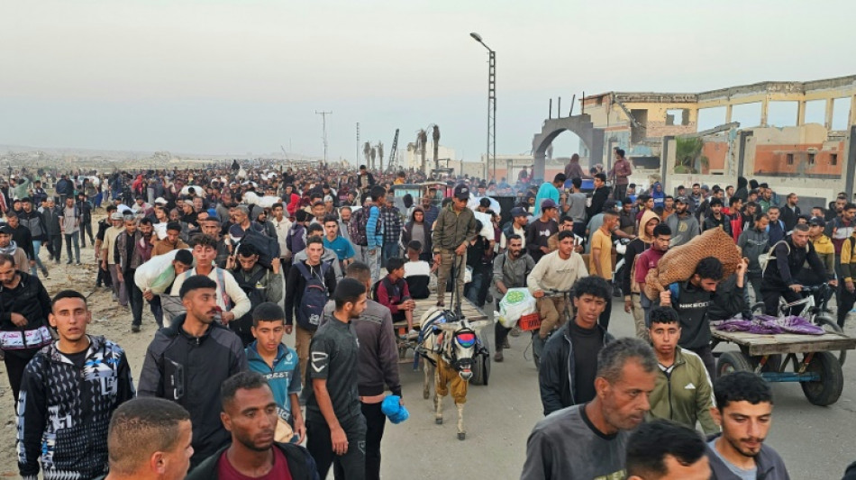 Des images de l'AFP montrent des Gazaouis évacuant des morts sur une charrette tirée par un âne, et une foule compacte d'hommes, certains chargés de colis, s'en revenant du centre, dans un paysage désertique et dévasté.